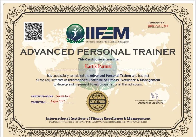 a certified Advanced Personal Trainer from the International Institute of Fitness Excellence & Management (IIFEM), dedicated to helping busy Indians achieve fat loss at home—without the need for a gym.